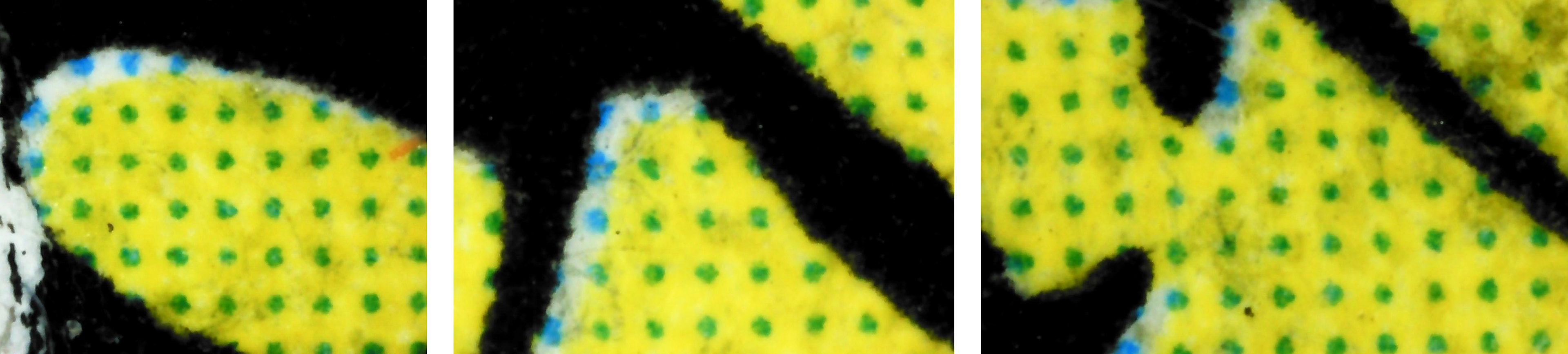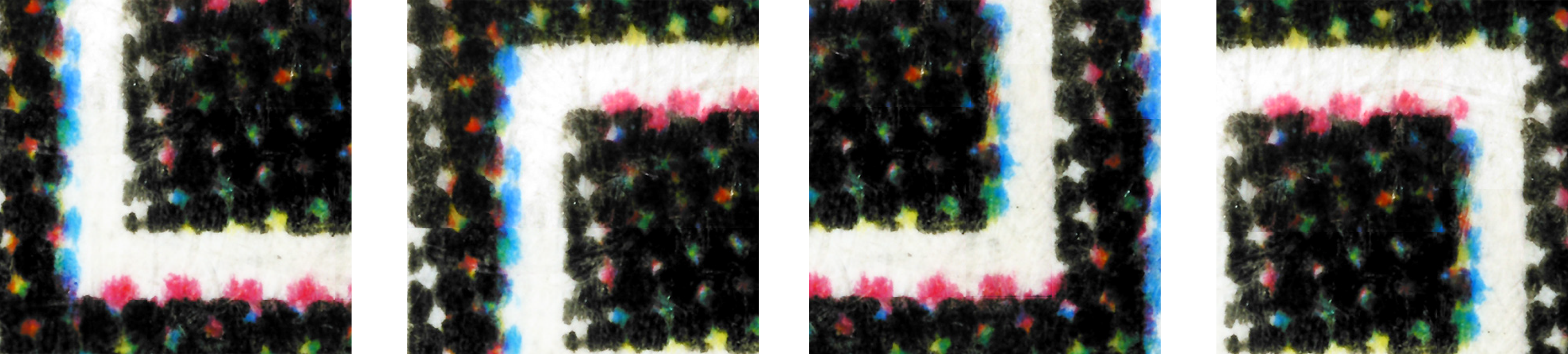 A collection of zoomed in photos of dots of ink on paper